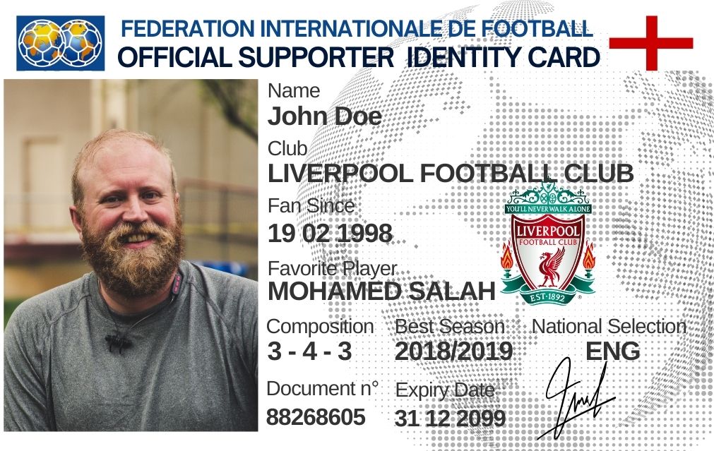 Le design de cette Carte d'Identité De Supporter est inspiré des vrais documents d'identité.